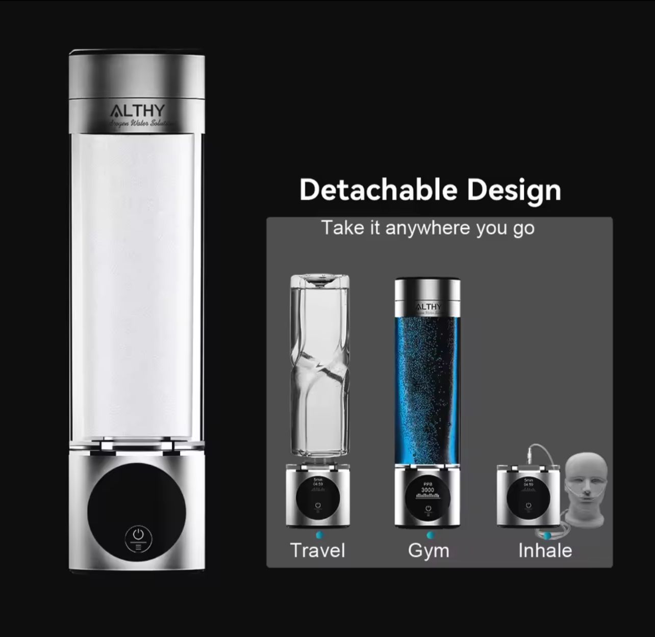 Garrafa geradora de água de hidrogênio de desempenho ALTHY DuPont SPE + PEM lonizador de câmara dupla + PPB e exibição de tempo + dispositivo de inalação H2